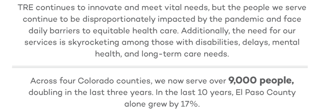 Be The Change We are empowering people, strengthening families, and building inclusive communities, but we cannot do it alone. Will you join us?Your gift could change the world for one person.Learn more ways to support our mission at www.tre.org/donate.